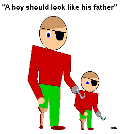 A circumcised father with an intact son - a telling rejoinder to "a boy should look like his father"  A cartoon  A 2500-year-old fable by Æsop