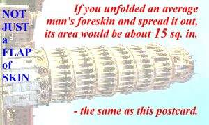 Now, it may happen that his father doesn't have a foreskin, but don't worry, your son's foreskin is not some kind of python that's going to rise up and strangle him. About 70% of the males in the world (about 2.1 billion men and boys) have them, and they're very trouble-free. In fact many men say they greatly enjoy having one and would not willingly part with it. There are several good reasons for this. First, let's look at what his foreskin is. You've probably heard it called just "a flap of skin covering the end of the penis". Well, there's more wrong than right about that expression: