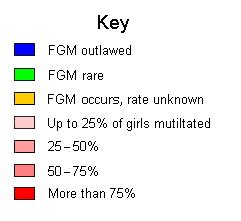 ![]() (FGC is outlawed in countries marked with blue crosshatching but is still prevalent at the rate shown in the underlying shade of pink.) |