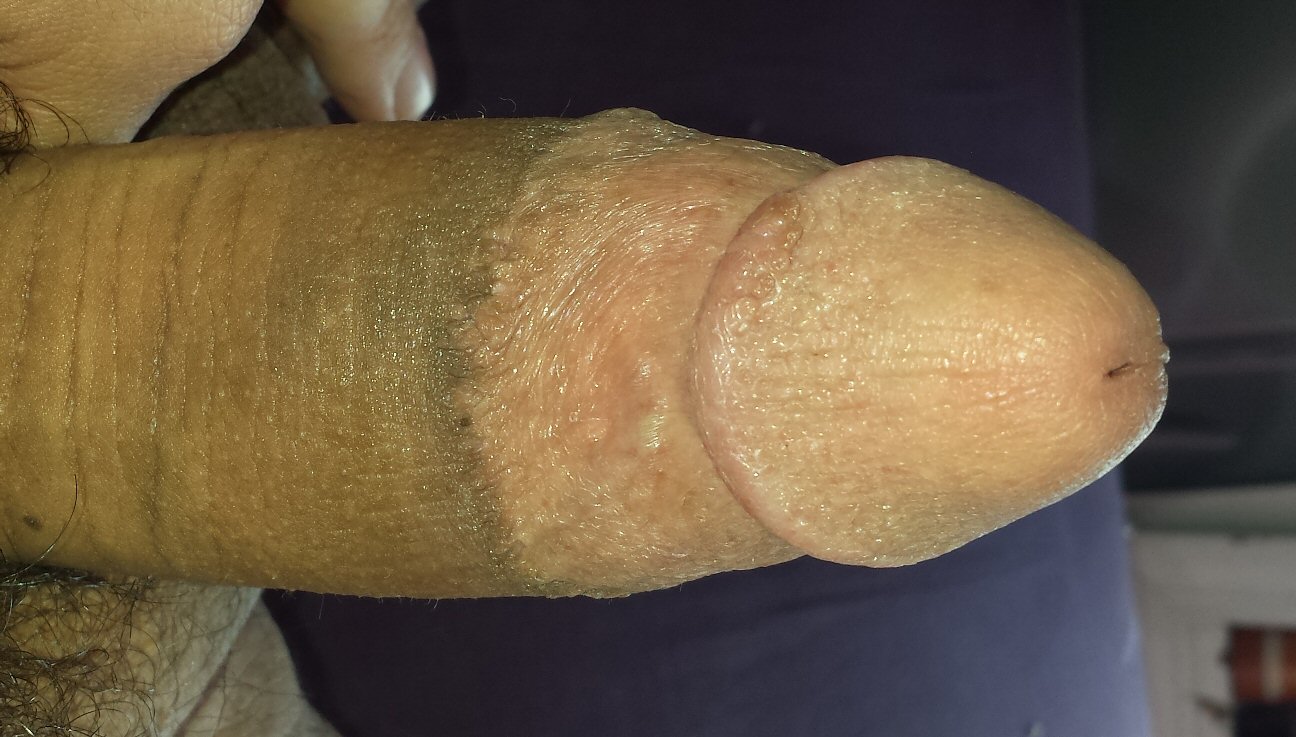 Subsequent to circumcision, some men develop skin