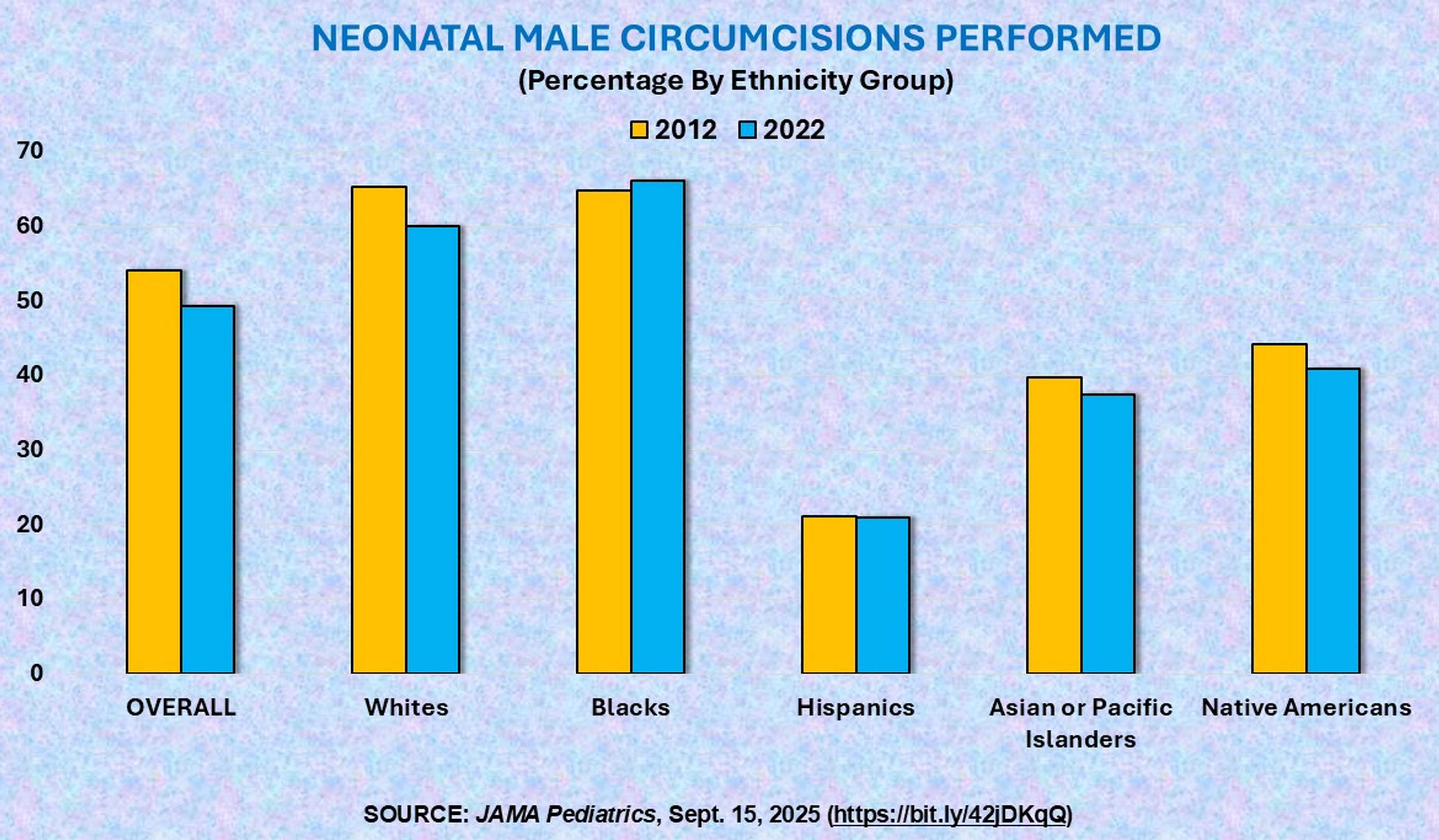 - Credit: Graphic created by M.E. Newman, Johns Hopkins Medicine< The fall was greatest among White babies (5.3%), those living in high-income ZIP code areas (8.3%) and with private health insurance (7.9%) though these still had the highest rates in 2022.The study, led by Aaron Tobian, who has led several other pro-cutting studies, is written in a very pro-cutting style, extolling the usual "health benefits" without mentioning how slight they are, ignoring the risks and human rights issues, citing the expired 2012 AAP policy and misrepresenting the WHO policy. The letters to JAMA in response are illuminating. Conformity Rights